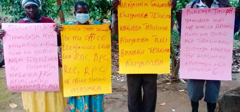 The Kasanje farmers in Masaka District are some of the victims facing eviction threats from a businessman, Joseph Bukenya who claims to have bought this land from Patel Prafur, an Indian businessman even though they both have never shown any evidence of ownership of the land. The land which is approximately 324 acres, is owned by more than 600 farmers under the Kasanje farmers’ group have peacefully lived on this land for more than four decades until Bukenya showed up. It has been 12 years since Bukenya started threatening the community with eviction, and for the past three months, he has used goons to intimidate and terrorize the community leaving the farmers in fear and panic.