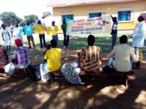 In Kamwenge, the RDC, Cadre Mucunguzi Geoffrey, could not let the chapter members present their grievances, following this resistance they moved their peaceful demonstration to the district’s taxi park where they continued to expose the failing healthcare system in the area and demanded for refurbishing of the health facilities to support Covid-19 patients. Several community members joined the demonstration on realizing their cause.