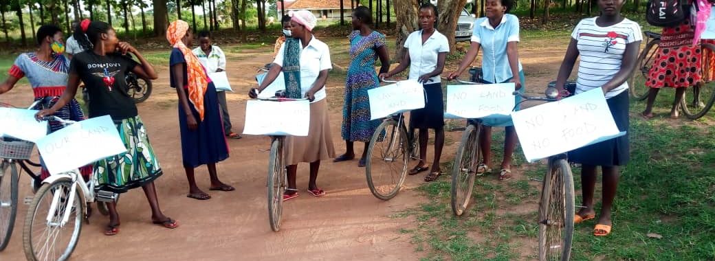 This bicycle-riding caravan is about women coming together to stand against land grabbing and corruption in their communities. Women recognize that when land is grabbed or when evictions occur, they are the most affected with their children.