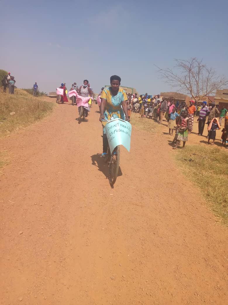 In Logiri-Arua, West Nile, the National Forestry Authority (NFA) has been perpetrating evictions and land grabbing for a long time. Homes have been destroyed and several community members have also been assaulted. The women joined in the bicycle caravan to continue amplifying their voices against these atrocities demanding that NFA leave their land. NFA claims that this community is settling in a game reserve which the community denies having lived here for centuries. Some leaders at the sub-county headquarters reacted harshly towards the women but this did not deter them from presenting their demands.
